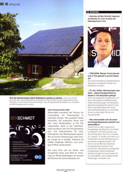 Wie Sie sich bereits heute auf die Wärmeversorgung in Zukunft vorbereiten, darüber spricht BENSCHMIDT im Interview mit der Tirolerin. Was im Interview allerdings nicht zur Sprache kommt: Die richtige Energieversorgung (Strom, Warmwasser, Raumwärme, Energie für Anlagentechnik und Prozesse) lässt sich selten pauschal bestimmen. Je nach Größenordnung des Projektes, Lage, Nutzung, Gewohnheiten und Komfortansprüche lässt sich ein individuelles Energiekonzept erstellen. Der Vorteil bei maßgeschneiderten Lösungen: Sie schonen nicht nur die Umwelt, sondern haben vor allem Ihre Energiekosten im Griff. Investitionen rechnen sich schnell und verbessern das Betriebsergebnis.